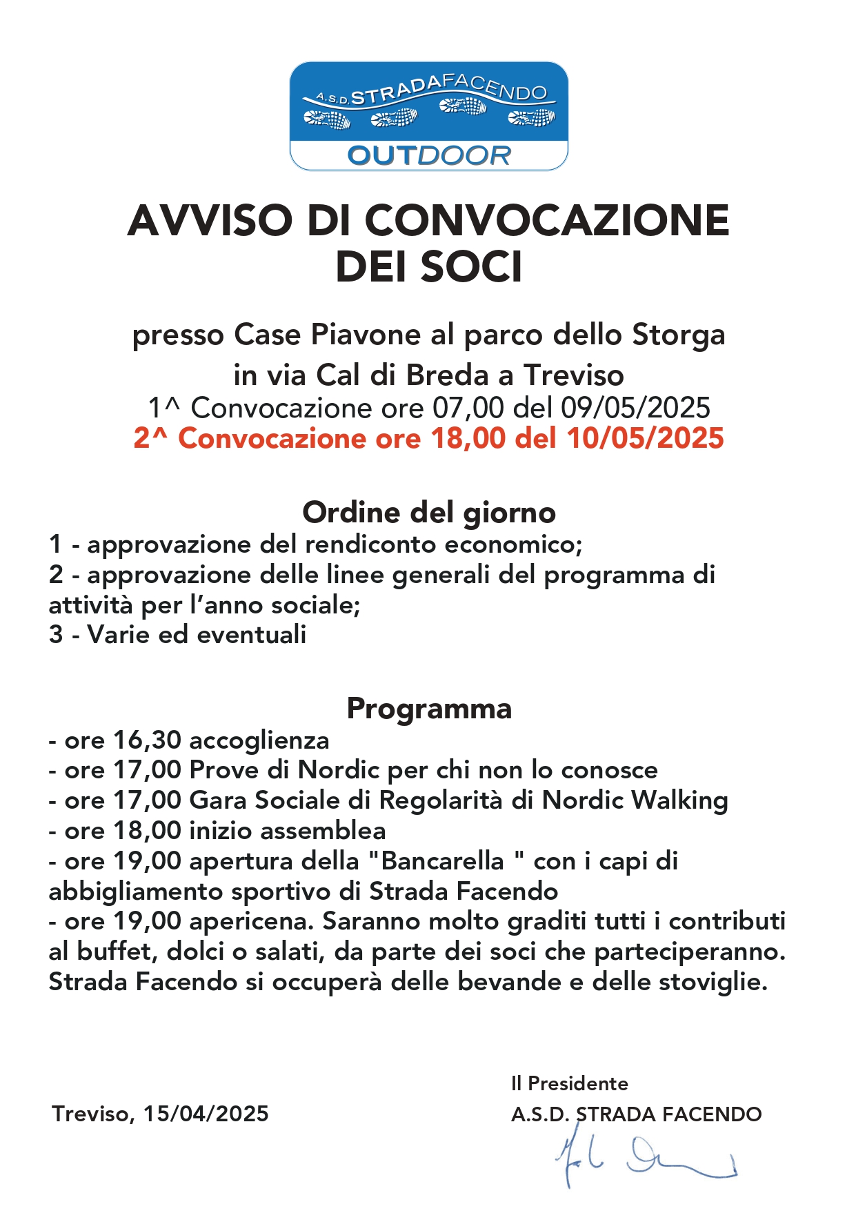 ASSEMBLEA DEI SOCI A.S.D. STRADA FACENDO – NORDIC WALKING TREVISO